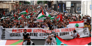 Por eso, se hace imperativo que… la clase trabajadora, los explotados y oprimidos… asumamos la causa palestina como propia y nos sumemos a las crecientes movilizaciones de protesta contra el sionismo y sus socios, que se están llevando a cabo de nuevo en ciudades de Europa y EEUU.[14]
